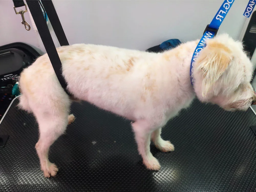 Coupe à la tondeuse pour réduire la longueur du poil de manière uniforme.
